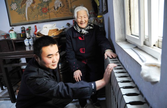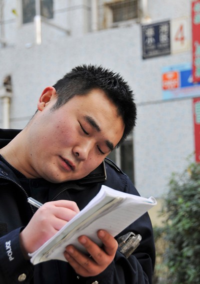 在四號(hào)樓下,小胡遇見一位正在散步的大媽,主動(dòng)熱情地招呼,“您好阿姨,我是供熱站的小胡,您家中暖和不?室溫大約多少度?”在聽到大媽說家中室溫有20度時(shí),小胡滿意地笑了,他隨即掏出一份供熱宣傳手冊(cè)送給大媽,耐心地講解了部分供熱小常識(shí),并告訴了他本人的電話號(hào)碼,“阿姨,有事您給我打電話。”